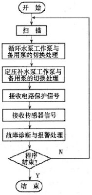 水流開關(guān)用于檢測(cè)水泵啟動(dòng)后管路內(nèi)是否有水流通過,若泵運(yùn)行為兩用一備則每臺(tái)泵前端安裝一個(gè)水流傳感器、共計(jì)3個(gè)?;蛞挥靡粋鋭t兩臺(tái)泵共計(jì)安裝一個(gè)水流傳感器。具體工作過程為:PLC啟動(dòng)某臺(tái)泵后,經(jīng)過設(shè)定的延時(shí),PLC將檢測(cè)該泵的水流傳感器輸出信號(hào),若該信號(hào)指示無水流動(dòng)則PLC判定該水泵故障,產(chǎn)生故障報(bào)警信號(hào)、同時(shí)將該水泵斷電并將該泵的備用泵投入運(yùn)行。