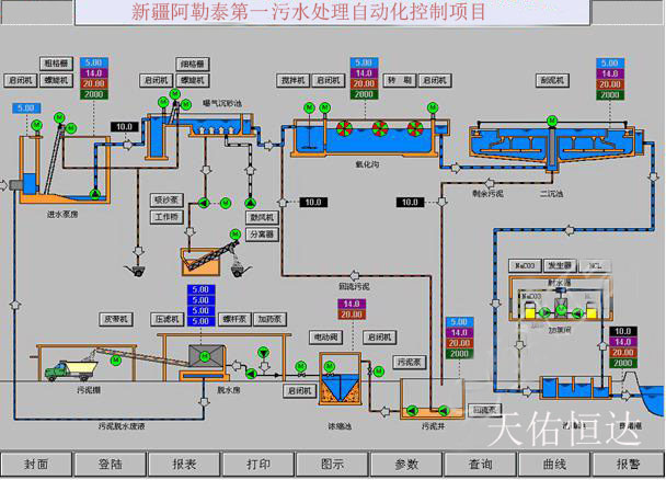 系統(tǒng)概述 污水處理為了使得排出的污水經(jīng)過(guò)處理達(dá)到某一水體或再次使用的水質(zhì)要求。一般分為生活污水處理和生產(chǎn)污水處理。新疆阿勒泰第一污水廠(chǎng)的自動(dòng)化控制系統(tǒng)是基于現(xiàn)代智能化工廠(chǎng)的先進(jìn)思想,采用分散控制、集中監(jiān)測(cè)管理的控制方式。天佑恒達(dá)工控自動(dòng)化控制系統(tǒng)應(yīng)用于污水處理廠(chǎng),完全能滿(mǎn)足污水處理工藝的要求,提供了一種高可靠性、低成本、更優(yōu)化的控制方案。
